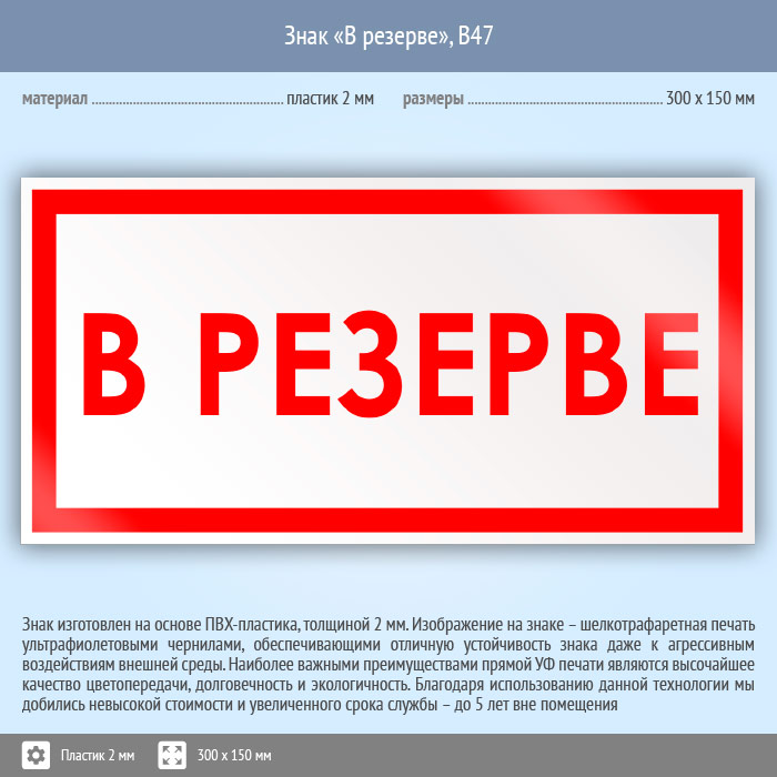 Знак «В резерве», B47 (пластик, 300х150 мм) в Кашире купить