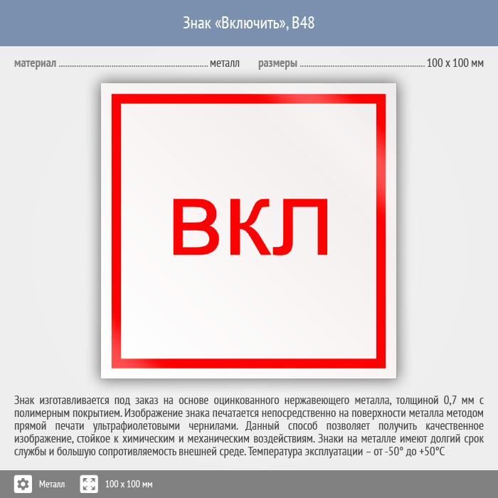 Знак «Включить», B48 (металл, 100х100 мм) в Кашире купить
