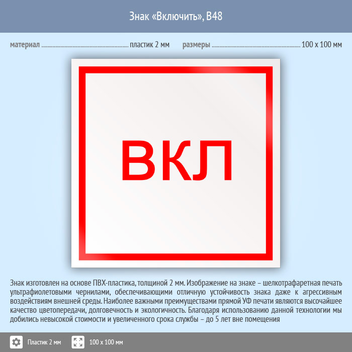 Знак «Включить», B48 (пластик, 100х100 мм) в Кашире купить