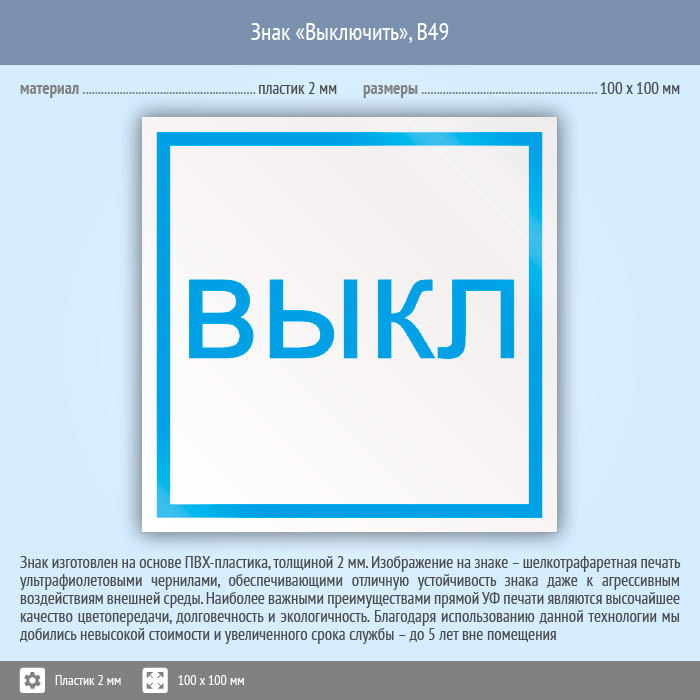 Знак «Выключить», B49 (пластик, 100х100 мм) в Кашире купить