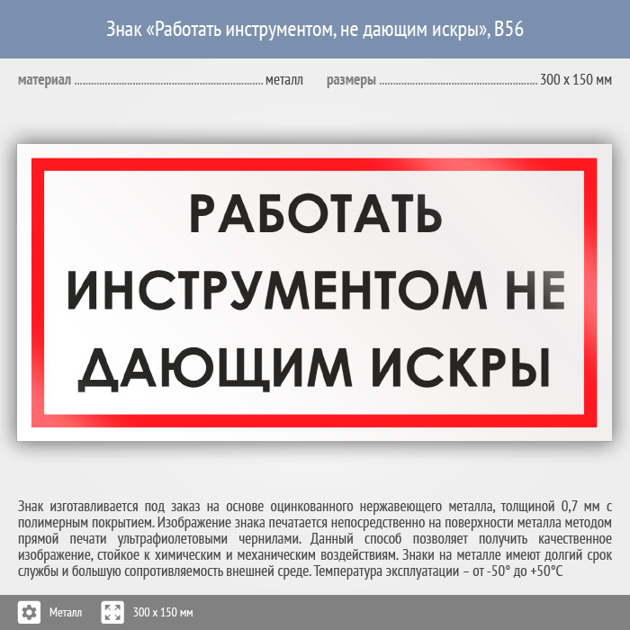 Знак «Работать инструментом, не дающим искры», B56 (металл, 300х150 мм) в Кашире купить