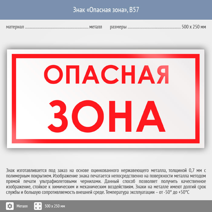 Знак «Опасная зона», B57 (металл, 500х250 мм) в Кашире купить