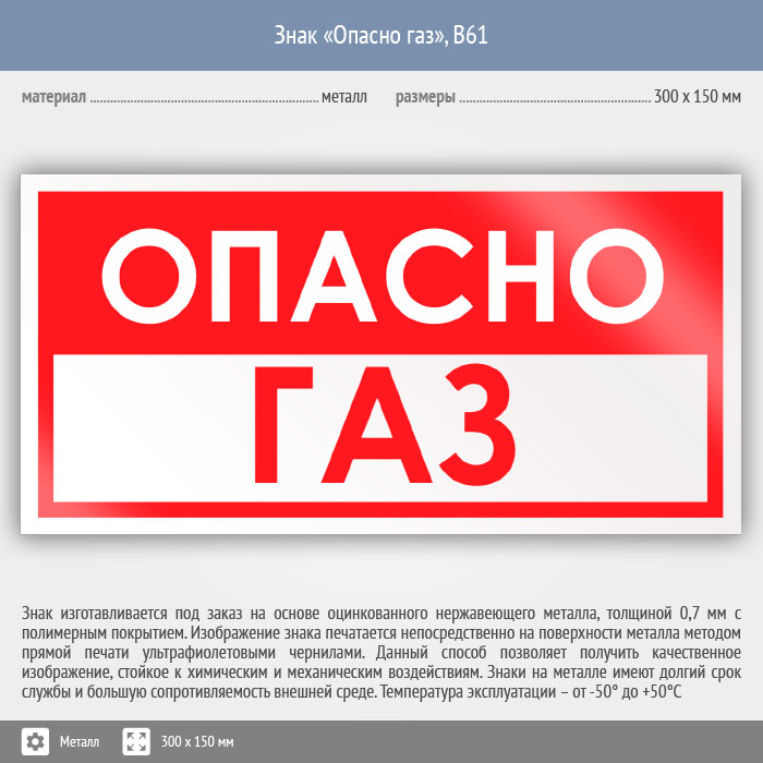 Знак «Опасно газ», B61 (металл, 300х150 мм) в Кашире купить