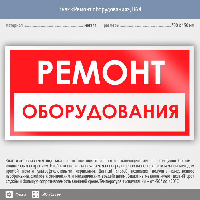 Знак «Ремонт оборудования», B64 (металл, 300х150 мм) в Кашире купить