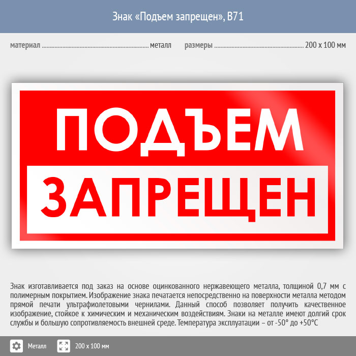 Знак «Подъем запрещен», B71 (металл, 200х100 мм) в Кашире купить
