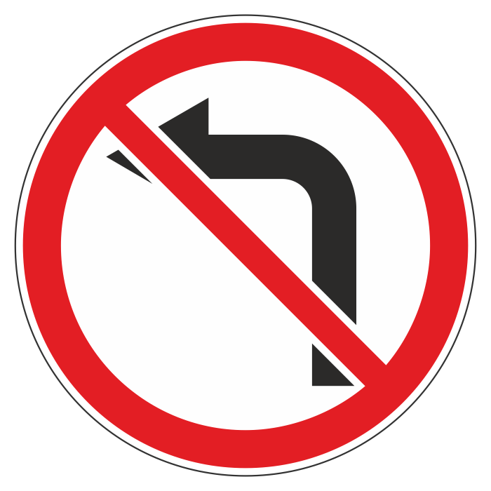 Дорожный знак 3.18.2 «Поворот налево запрещен» (металл 0,8 мм, II типоразмер: диаметр 700 мм, С/О пленка: тип А коммерческая) в Кашире купить