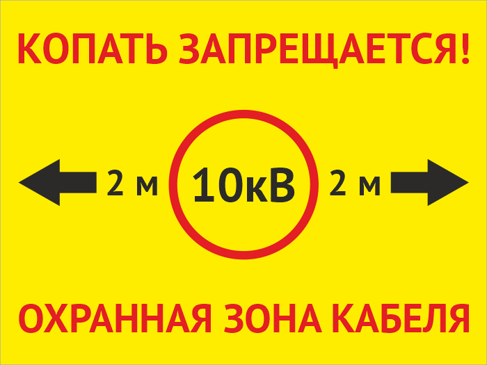 Табличка «Охранная зона кабеля 10 кВ. Копать запрещается», OZK-01 (пластик 2 мм, 400х300 мм) в Кашире купить