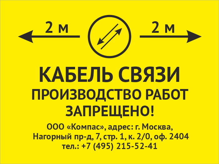 Знак «Охранная зона кабеля связи. Производство работ запрещено», OZK-03 (пластик 2 мм, 400х300 мм) в Кашире купить