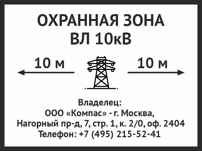 Знак «Охранная зона ВЛ 10 кВ (высоковольтной линии)», OZK-07 (пластик 2 мм, 400х300 мм) в Кашире купить