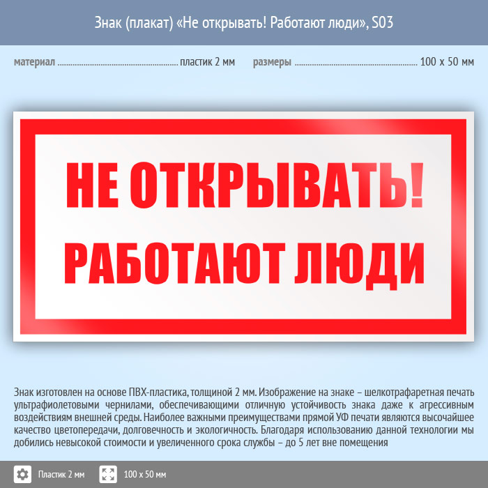 Знак (плакат) «Не открывать! Работают люди», S03 (пластик, 100х50 мм) в Кашире купить