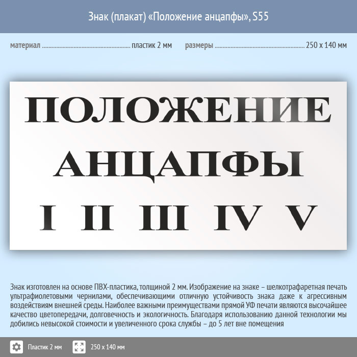 Знак (плакат) «Положение анцапфы», S55 (пластик, 250х140 мм) в Кашире купить