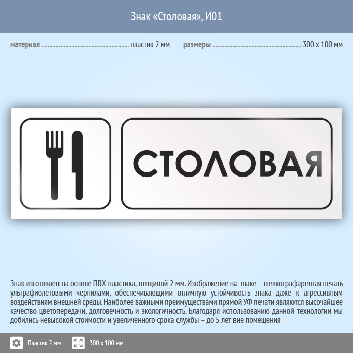 Знак «Столовая», И01 (пластик, 300х100 мм) в Кашире купить