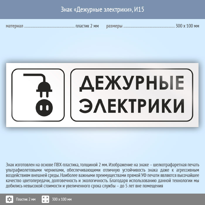 Знак «Дежурные электрики», И15 (пластик, 300х100 мм) в Кашире купить