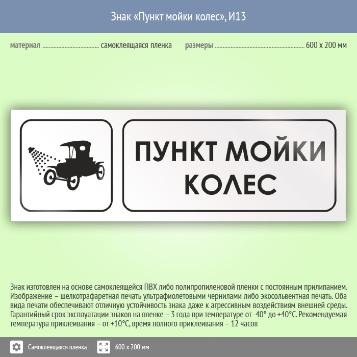 Знак «Пункт мойки колес», И13 (пленка, 600х200 мм) в Кашире купить