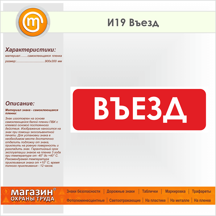 Знак «Въезд», И19 (пленка, 900х300 мм) в Кашире купить