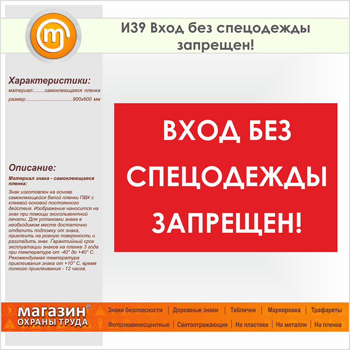 Знак «Вход без спецодежды запрещен!», И39 (пленка, 900х600 мм) в Кашире купить