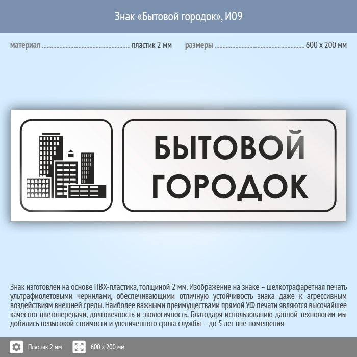 Знак «Бытовой городок», И09 (пластик, 600х200 мм) в Кашире купить