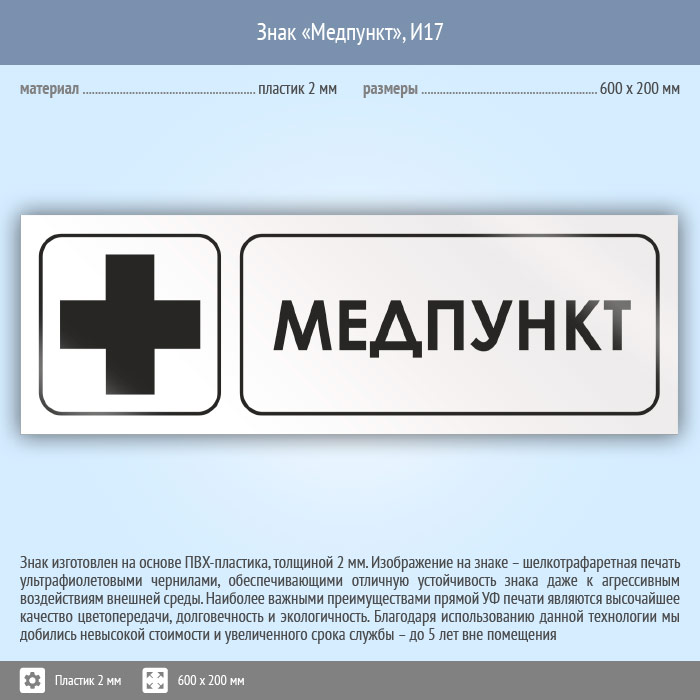 Знак «Медпункт», И17 (пластик, 600х200 мм) в Кашире купить