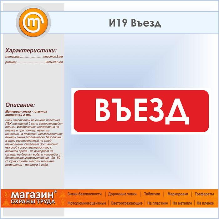 Знак «Въезд», И19 (пластик, 900х300 мм) в Кашире купить