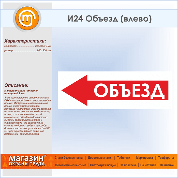 Знак «Объезд (влево)», И24 (пластик, 900х300 мм) в Кашире купить