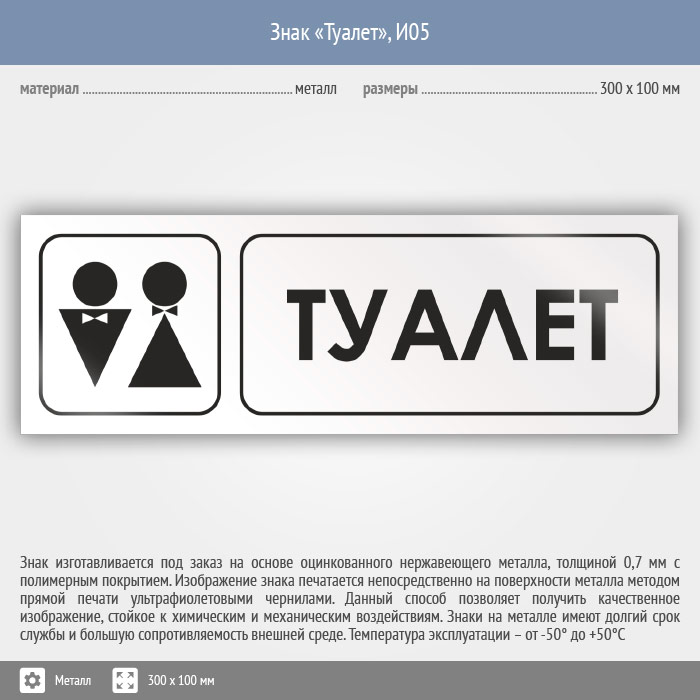Знак «Туалет», И05 (металл, 300х100 мм) в Кашире купить