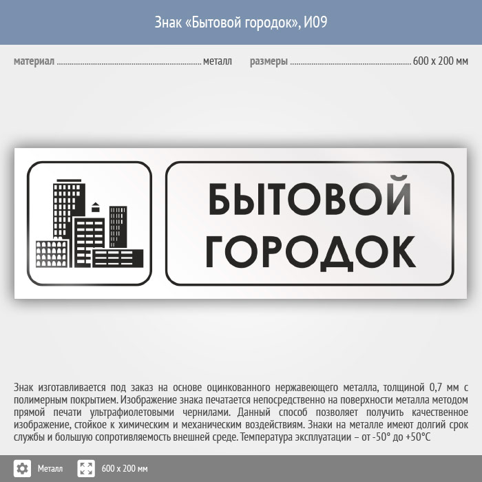 Знак «Бытовой городок», И09 (металл, 600х200 мм) в Кашире купить