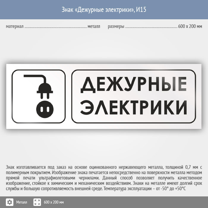 Знак «Дежурные электрики», И15 (металл, 600х200 мм) в Кашире купить