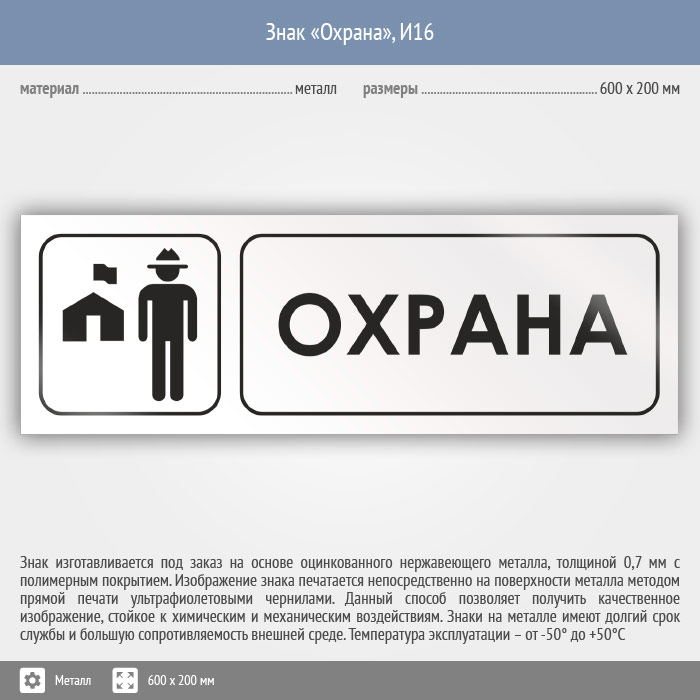 Знак «Охрана», И16 (металл, 600х200 мм) в Кашире купить
