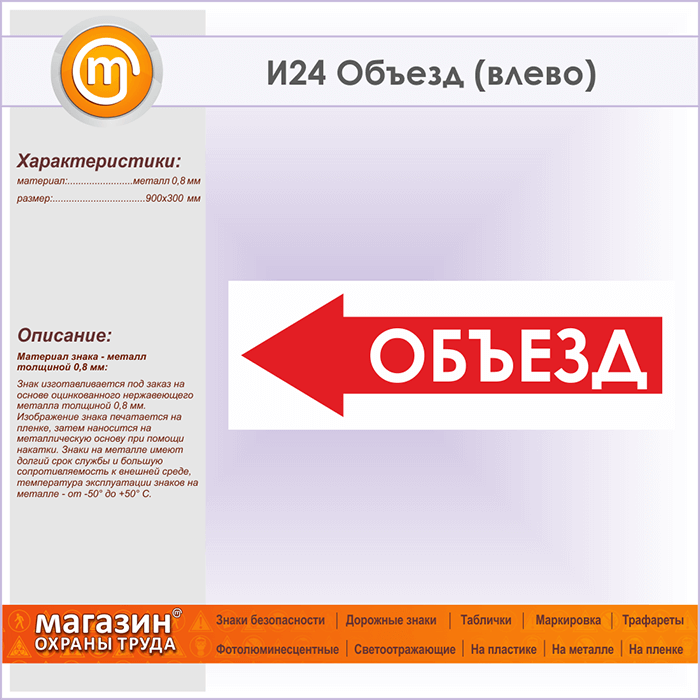 Знак «Объезд (влево)», И24 (металл, 900х300 мм) в Кашире купить