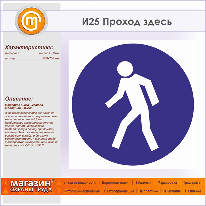 Знак «Проход здесь», И25 (металл, 700х700 мм) в Кашире купить
