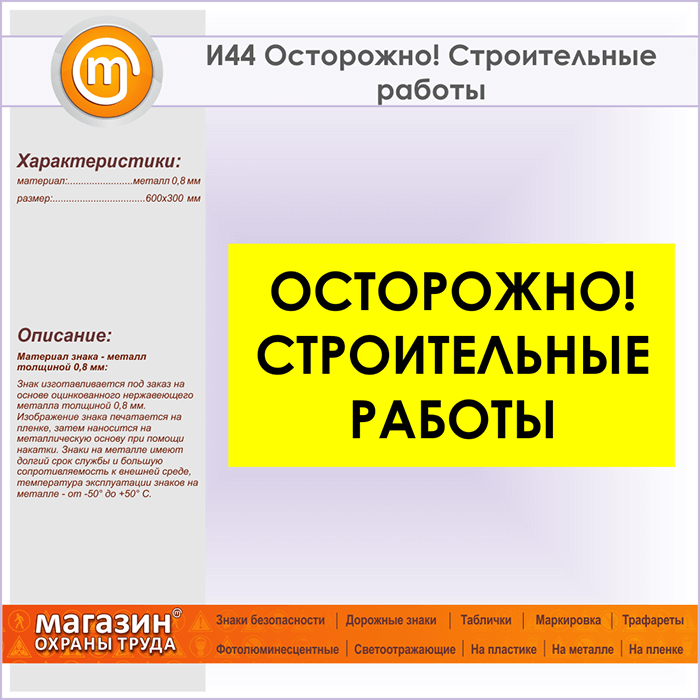 Знак «Осторожно! Строительные работы», И44 (металл, 600х300 мм) в Кашире купить