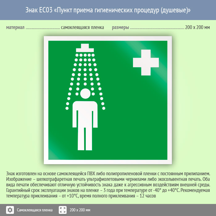 Знак EC03 «Пункт приема гигиенических процедур (душевые)» (пленка, 200х200 мм) в Кашире купить