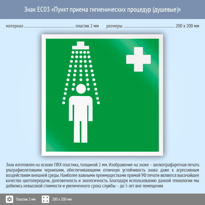 Знак EC03 «Пункт приема гигиенических процедур (душевые)» (пластик, 200х200 мм) в Кашире купить