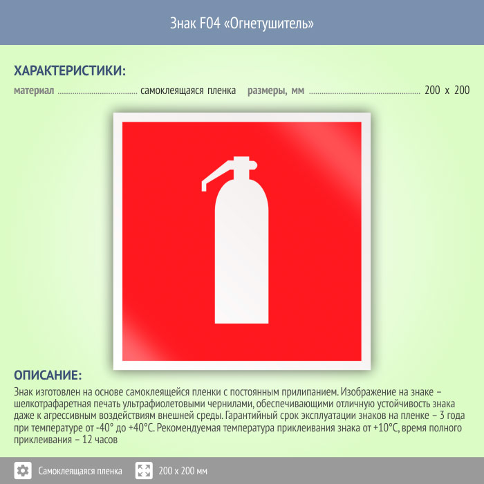 Знак F04 «Огнетушитель» (пленка, 150х150 мм) в Кашире купить