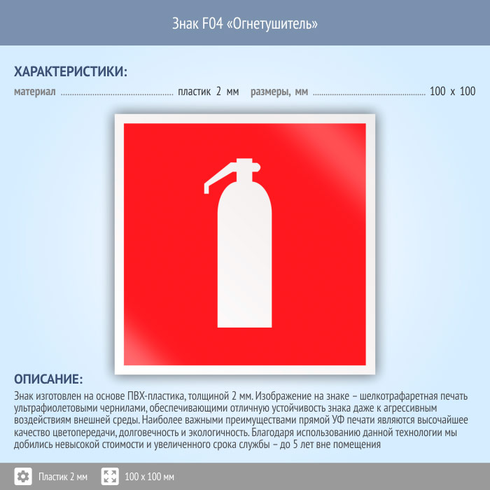 Знак F04 «Огнетушитель» (пластик, 100х100 мм) в Кашире купить