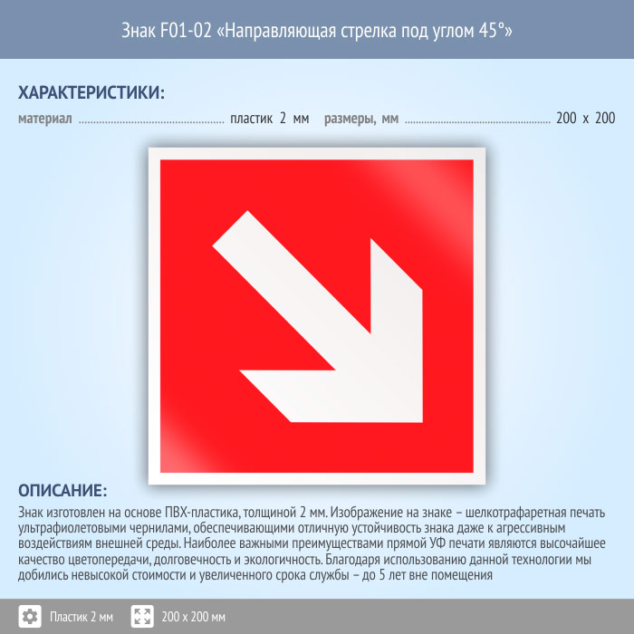 Знак F01-02 «Направляющая стрелка под углом 45°» (пластик, 200х200 мм) в Кашире купить