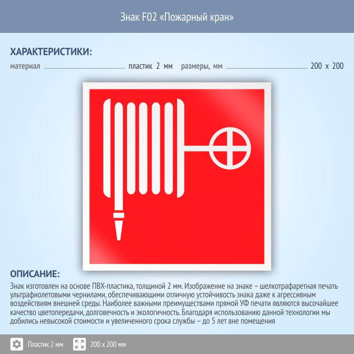 Знак F02 «Пожарный кран» (пластик, 200х200 мм) в Кашире купить
