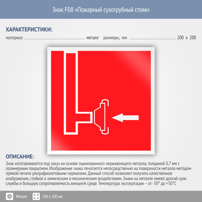 Знак F08 «Пожарный сухотрубный стояк» (металл, 200х200 мм) в Кашире купить