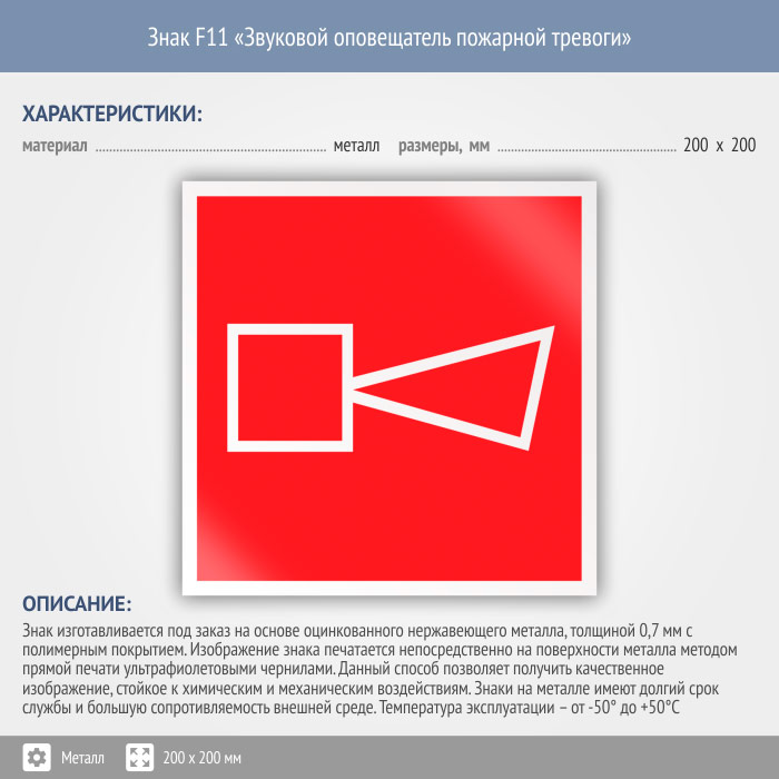 Знак F11 «Звуковой оповещатель пожарной тревоги» (металл, 200х200 мм) в Кашире купить